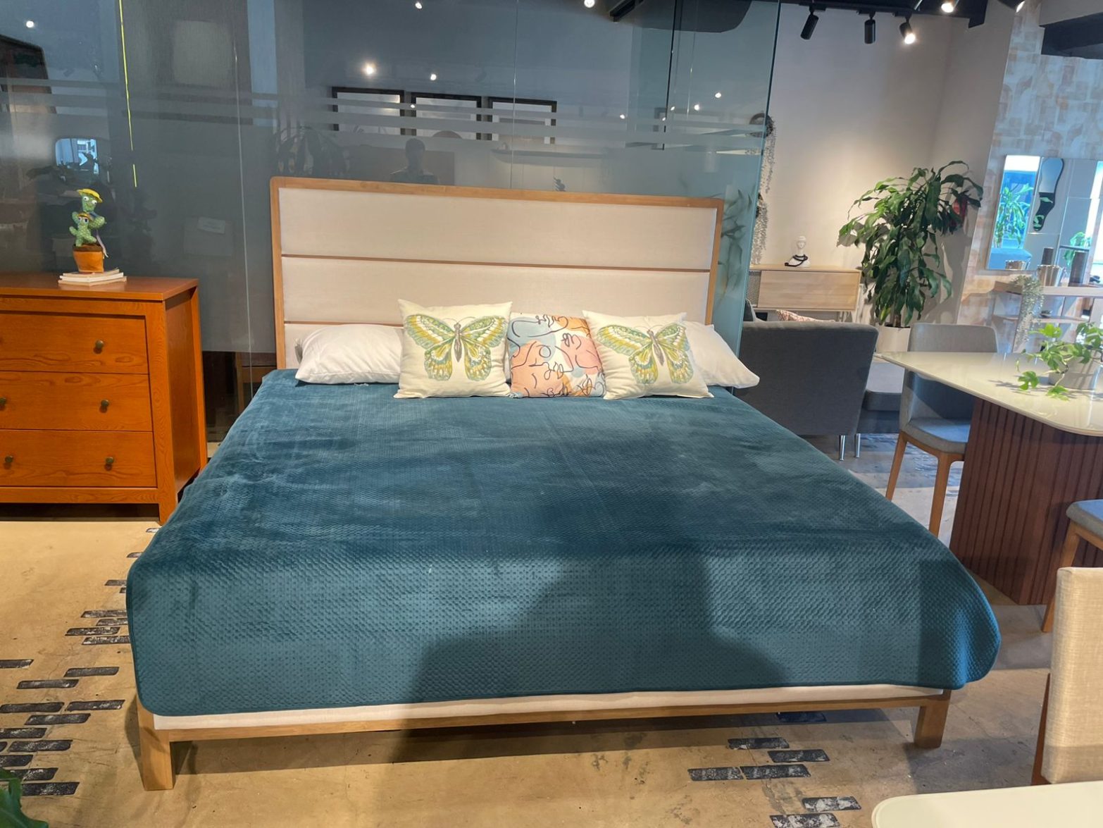 CAMA QUEEN MADERA NATURAL COLOR CREMA