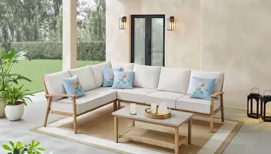 JUEGO DE EXTERIOR WEST HAVEN 5-PIECE WICKER OUTDOOR SECTIONAL SET WITH CUSHIONGUARD ALMOND CUSHIONS