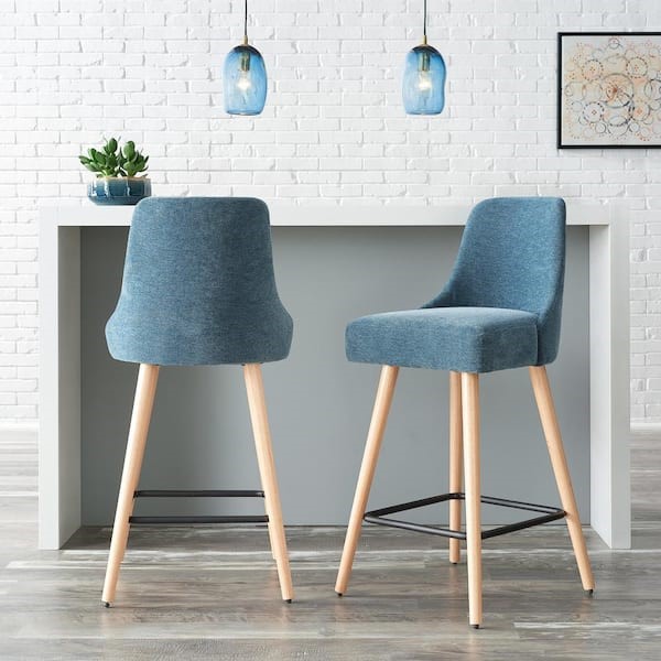 taburete de bar (set de 2)StyleWell 30 in. Benfield Twilight/Natural Blue Wood Upholstered Bar Stools with Back