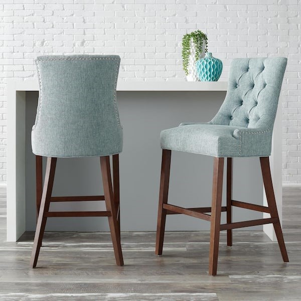 Taburetes StyleWell Bakerford Aloe Blue Upholstered Bar Stool with Back (Set of 2)Upholstered Bar Stools with Back (copia)
